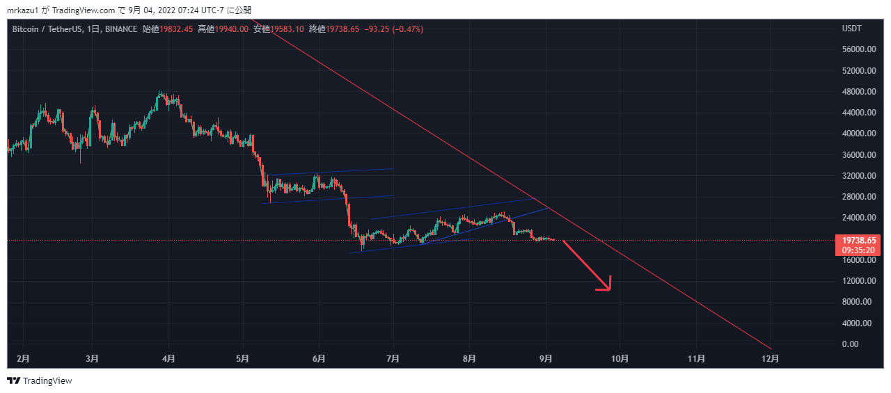 BTCは、ウェッチを割ってダラダラと少しずつ14000万ドル位下を深堀かも知れません、最後のレンジになるかもしれませんし、ショートをやるのだったら、欲ばらずにやりましょう。現物は買って行っても良いです。