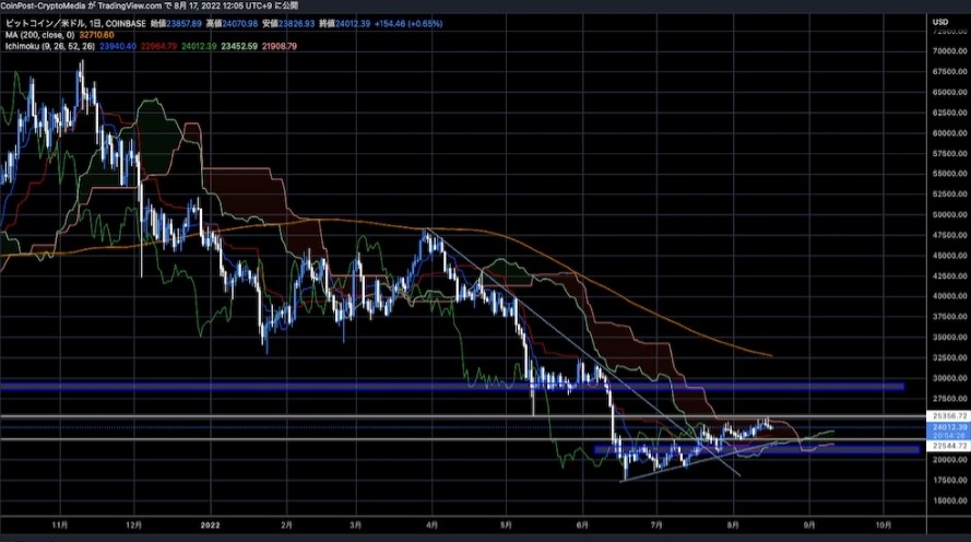 1.ビットコイン24000ドル前後で揉み合う、前週比では犬系コインの上昇目立つ