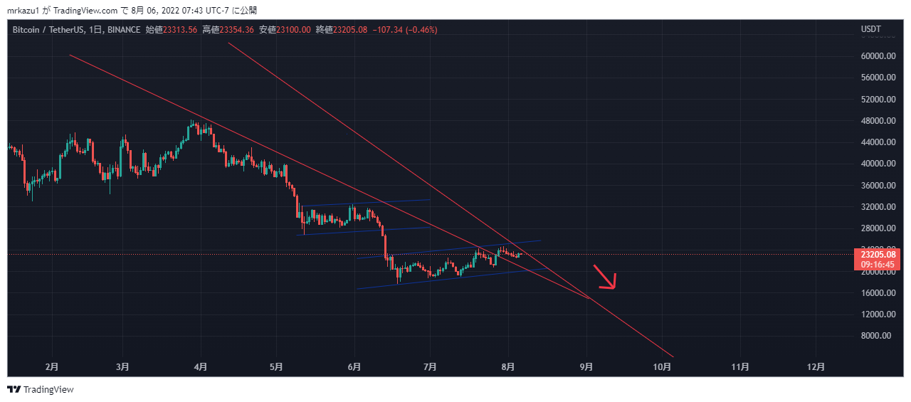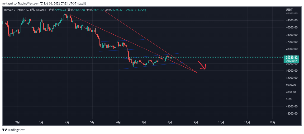 BTCは、下を深堀かも知れません、ロングは様子見をした方が良いでしょう。