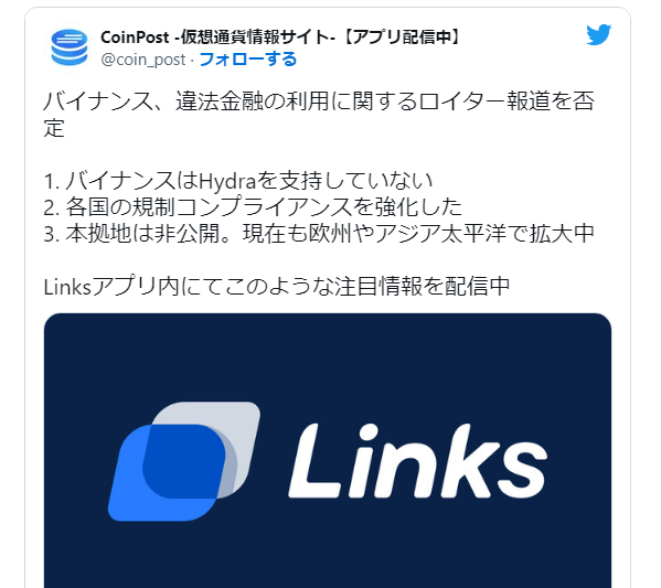 6月にはバイナンスが5年間で3,000億円の資金洗浄に利用されたとする報道が出ていたが、同社は世界レベルのサイバー犯罪対策チームで対処しており、世界規模での資金洗浄対策を主導している、として報道内容を断固否定していた。