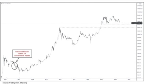 BTCはついに昨年最安値を底割れ、20年12月以来の水準となる27,682ドルまで下落した。