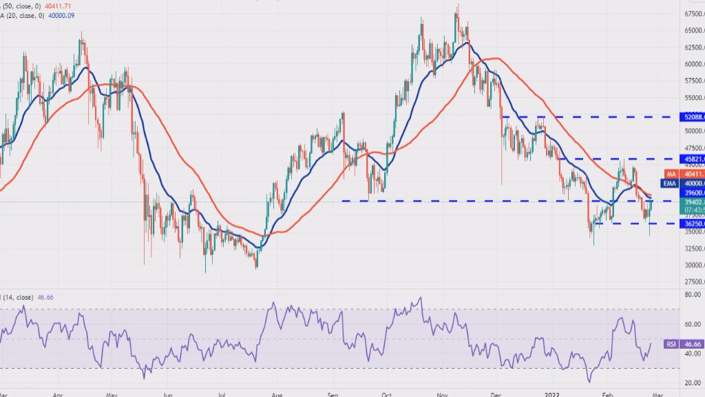 BTC / USDT 強気派が移動平均線以上にBTC価格を押し上げた場合、BTCは45,821ドルの直上のレジスタンスに向かって上昇していくだろう。そうなった場合には、弱気派が主導権を失っていることを示すものになるだろう。BTC価格が移動平均線を上回った状態を長く維持することができれば、底が形成されたと考えることができるだろう。 逆に、BTC価格が移動平均線から反落した場合、それはセンチメントが依然としてネガティブなままであり、トレーダーがラリーで売っていることを示すものだ。その後、弱気派はBTCを36,250ドル以下に沈め、それを維持しようと再び試みるだろう。それが成功した場合、BTCは34,322ドルから32,917ドルの間の強力なサポートゾーンにまで下落する恐れがあるだろう。