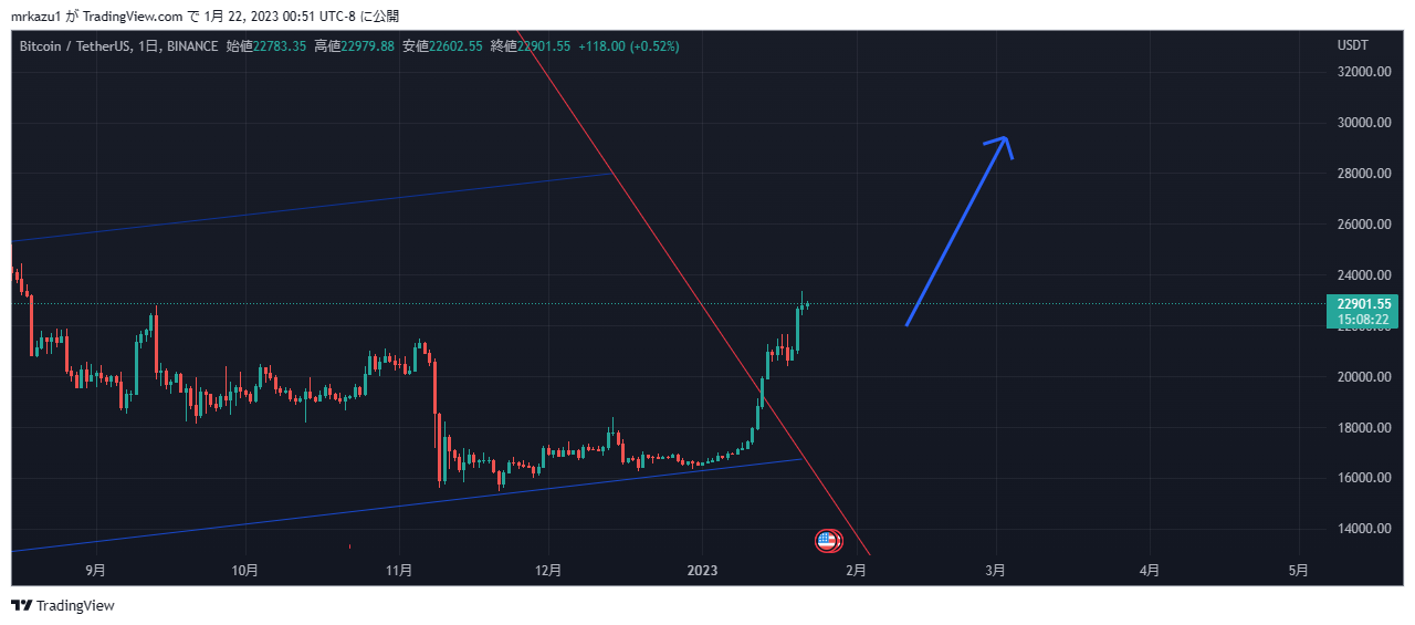 バイビット BTCは、綺麗なレンジを保ってます、2022年12/19日がBTC底値だと思っています。 こういう時こそ2024年5月のマイニング半減期に備えコッコッとBTCを買って行くのです! |