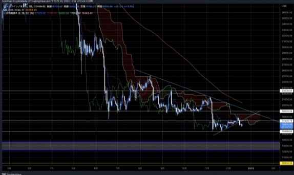 暗号資産(仮想通貨)市場では、ビットコインは前日比0.08%高の16,700ドル。
