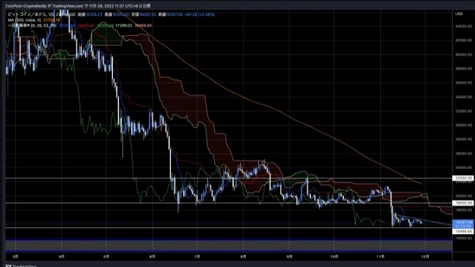 最大手取引所バイナンスがプルーフ・オブ・リザーブ(PoR)監査の一環で大量の仮想通貨(127,351BTC)の送金を図ったことでWhale Alertに検知されFUD(恐怖、不安、疑念)が発生する場面もあったが、CZが事情を説明し事態沈静化を図った。 29日には、米大手暗号資産レンディング企業BlockFiが米連邦破産法11条(チャプターイレブン)に基づいた破産申請を行なったことを発表した。 BlockFiは、今年6月に発生したテラ(LUNA)崩壊の影響で多額の損失を被っていた。その際に緊急融資を受けたFTXまでもが破綻し、財政が立ち行かなくなったと見られる。