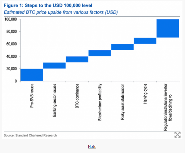 金融大手スタンダードチャータード銀行は、暗号資産(仮想通貨)ビットコイン(BTC)の価格が2024年末までに、10万ドル(約1,340万円)の水準まで上昇する可能性があるとの見解を示した。