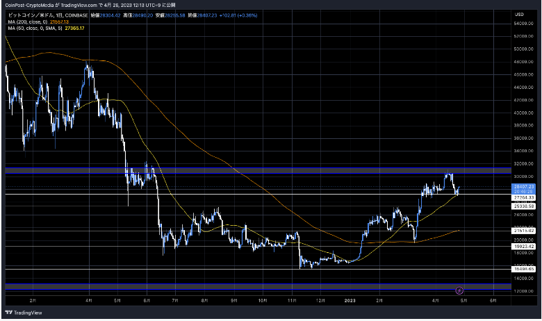 暗号資産(仮想通貨)市場では、ビットコインは前日比3.55%高の28,381ドルに。