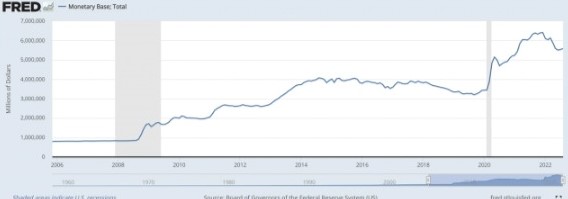 この影響で米国のマネタリーベースは、2008年6月の8,000億ドルから、2021年12月に6.4兆ドルにまで大幅拡大した。