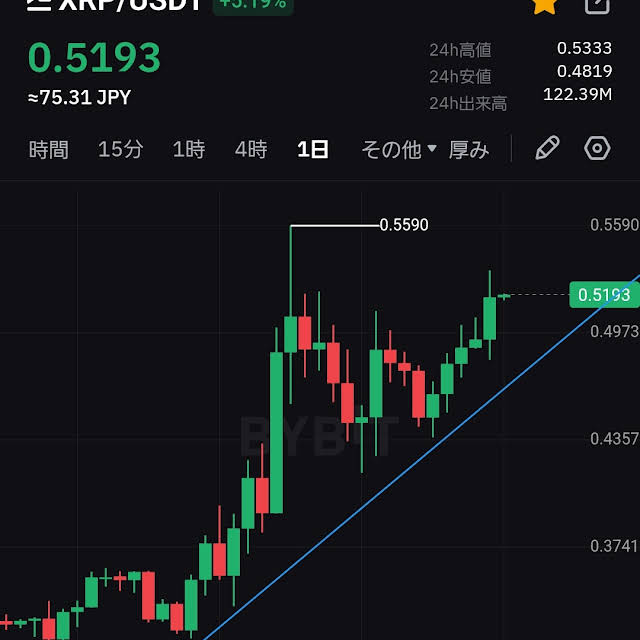 昨日から地合い悪化したにもかかわわらず、XRPだけ日足レベルの三角持ち合いをしっかり抜けてきています。