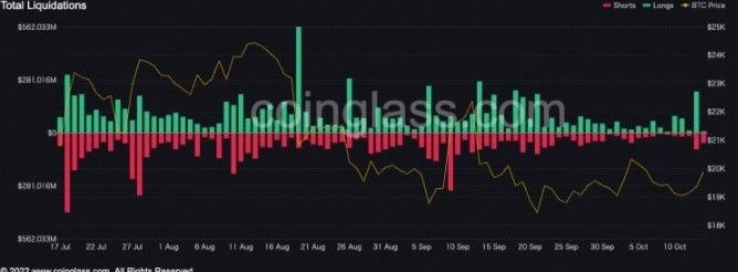 市場最高レベルのOI(未決済建玉)蓄積も相まって警戒感の募っていたBTCデリバティブ(金融派生商品)市場では、2.19億ドル(320億円)相当のロングポジションがロスカットされたが、最近の規模感からすると大人しい方であり一掃し切ったとは言い難い。