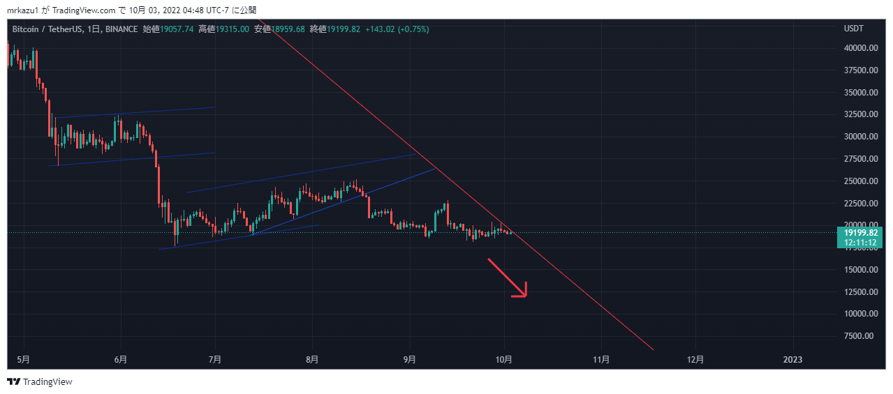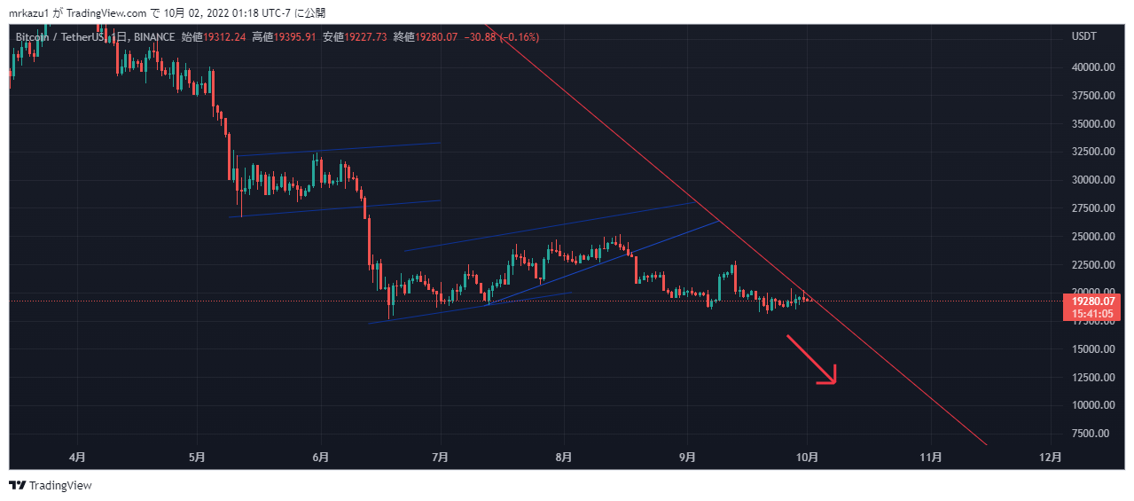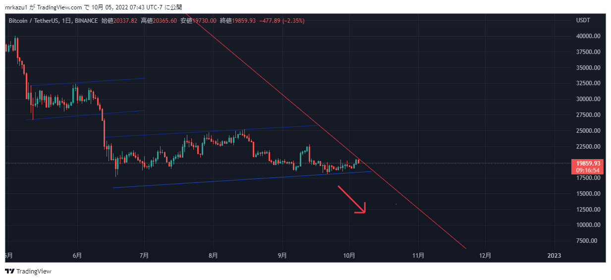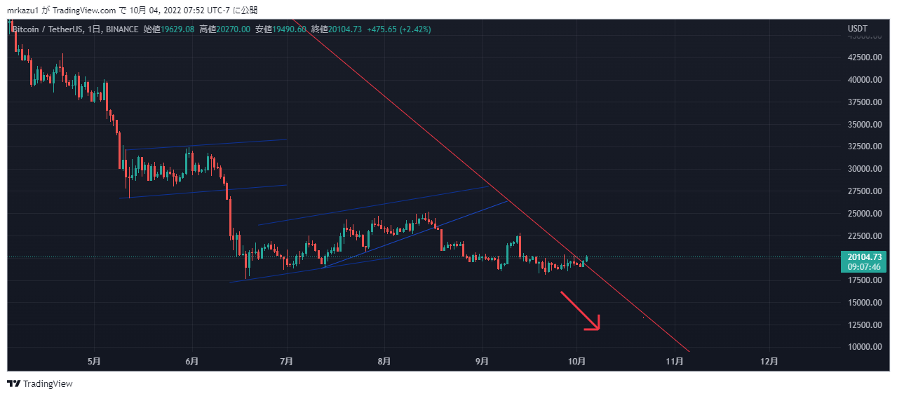 金融市場の方向感が出ましたね。アメリカCPI(消費者物価指数)8月の結果が予想8.1%を上回る8.3%だったため、インフレ抑制の利上げ継続ムードになり、株も仮想通貨も売られてます。(1・2枚目)