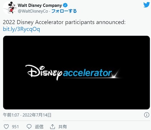 米ウォルト・ディズニー・カンパニーは13日、「2022 Disney Accelerator」の参加企業を発表した。