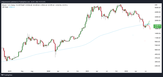 一方、Michaël van de Poppe氏は、約22,520ドルを推移する「200週移動平均線(200WMA)を超えた場合は、多くの流動性をもたらし、1BTC=30,000ドル付近まで上昇する可能性がある」との見解を示した。