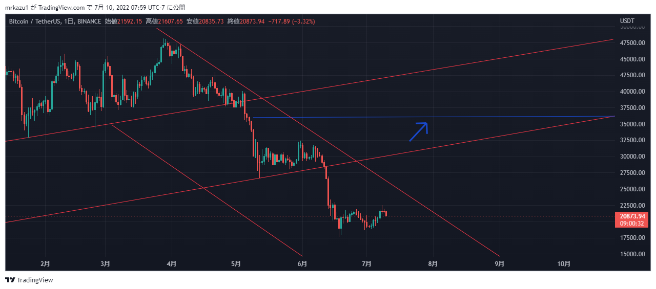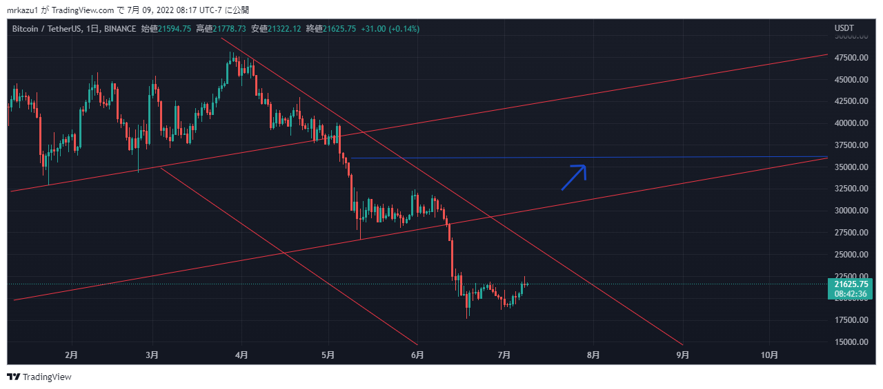 これを受け、暗号資産(仮想通貨)市場では、ビットコインは前日比+7.5%の298万円(22,000ドル)と反発。22,000ドル台を回復した。