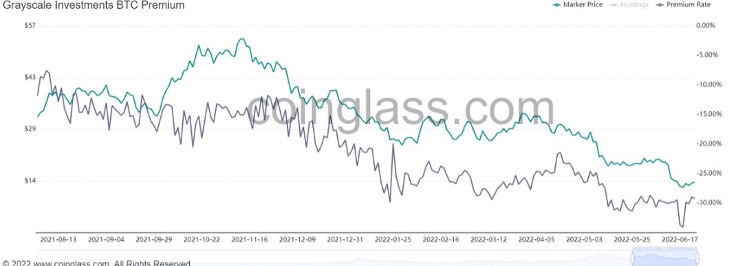 6月には仮想通貨レンディング会社の債務問題の懸念からディスカウントは34%まで拡大した。Three Arrows Capital(3AC)とBlockFiはそれぞれ3,890万株と1,980万株を保有するトップ2株主と報告されているが、市況急悪化やテラ・ショックを発端に経営難の噂が取沙汰されている。