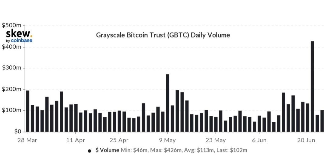今GBTCを購入しておき、ETF化が承認されれば、およそ30%の乖離の収束から利益を得ることができる。SECが申請を却下したとしても、グレイスケールに支払う年間管理手数料(2%)を差し引いても、最終的にペイできる公算は高いとトレーダーは考えているようだ。プレミアムが縮小した22日、GBTCの取引量も跳ね上がった。