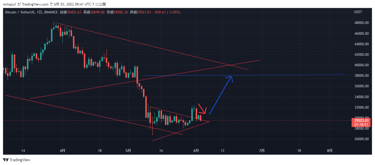 本日のBTCは三角持ち合いを抜けています、38000ドルは上昇する事でしょう。 |