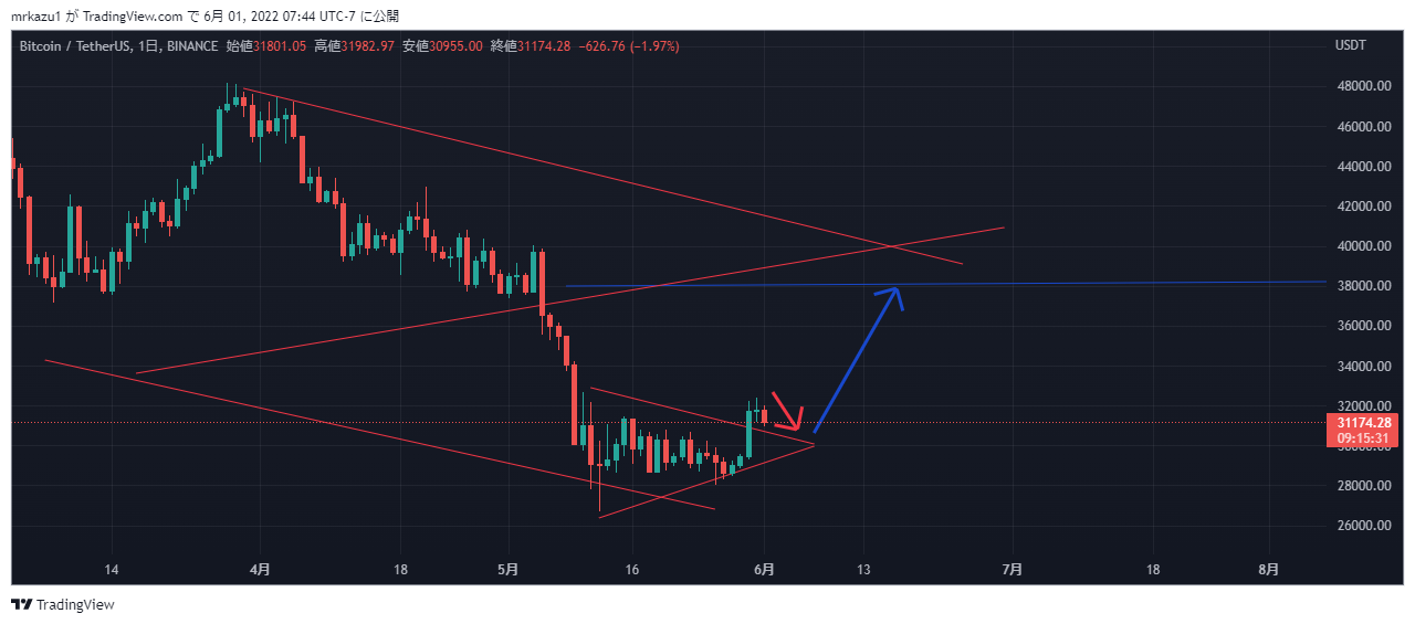 本日のBTCは三角持ち合いを抜けています、38000ドルは上昇する事でしょう。 |