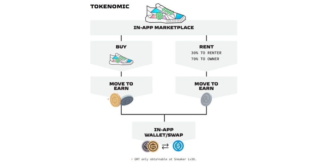 そのため、GMTの入手経路は、アプリ内ウォレット機能でソラナ(SOL)やGST、ステーブルコインのUSDCとスワップ(交換)するか、バイナンスや米コインベースなどの暗号資産取引所で直接購入するかの2択となっています。