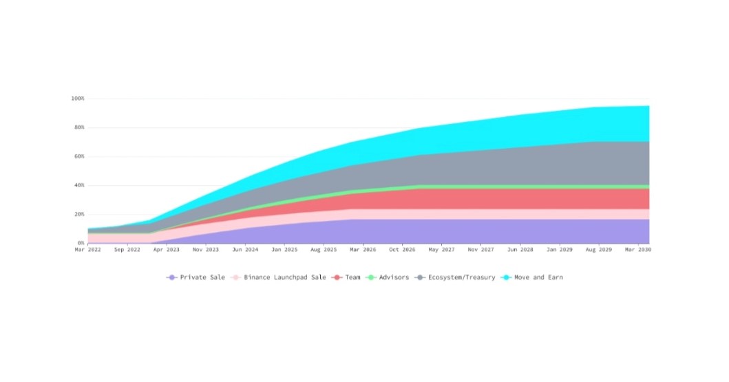 発行量の30%(18億GMT)は、Move to Earnとガバナンスへの参加報酬として配分されています。GMTのリリース量は3年毎に減少していくので、ゲームが普及してユーザーが増加するほど需給が引き締まることになります。