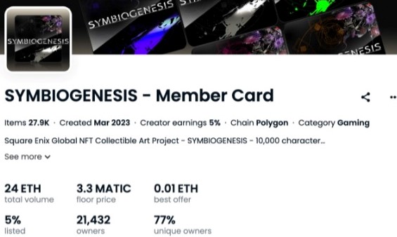 SYMBIOGENESIS(シンビオジェネシス)は、1万点のNFTコレクティブルアート(ETH基盤)に無料のブラウザ向けコンテンツを加えた、スクエニの新しいエンターテイメントサービス。