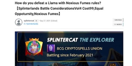 2-1.「Splinterlands」の記事 ブロックチェーンゲーム「Splinterlands」にはゲームに関する記事を書くことで稼ぐことができる仕組みがあります。「Splinterlands」のプレイヤーは、「PeakD」というブロックチェーン上のメディアでゲームの攻略記事を書きます。記事が評価をされるとトークンを得ることができます。そのトークンの保有量に応じて、「Splinterlands」のガバナンストークンであるSPSがエアドロップの形でプレイヤーに与えられます。