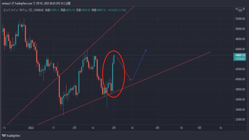 ロシア、ウクライナ共に自国の法廷通貨が大暴落すると、仮想通貨への買い込みが増してくるのです。又、クジラ大口投資家も仮想通貨の買いましが増えるので、3月からBTC爆上げも期待出来ます!